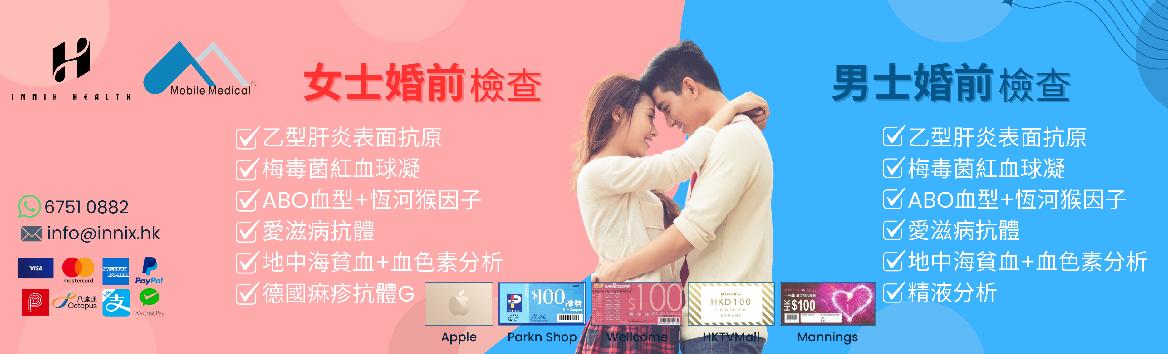女士婚前 身體檢查(送 1900 Apple Gift Card / 超市禮卷) *美邦醫學體檢中心