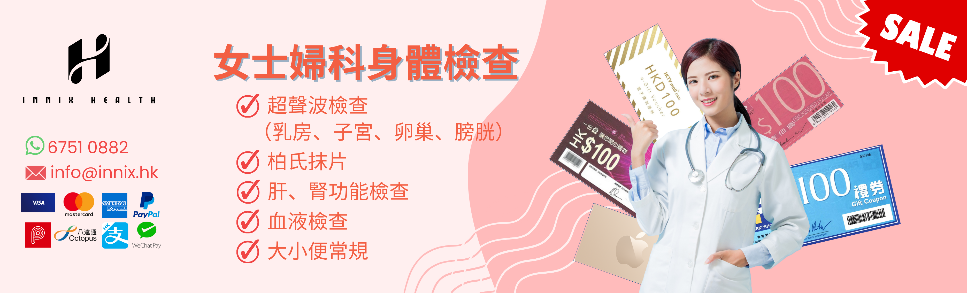 58項指標婦科檢查 (送$2800 Apple Gift Card / 超市禮卷) *接受Paypal/Visa/Master/AE/支付寶/微信/PayMe/八達通 付款