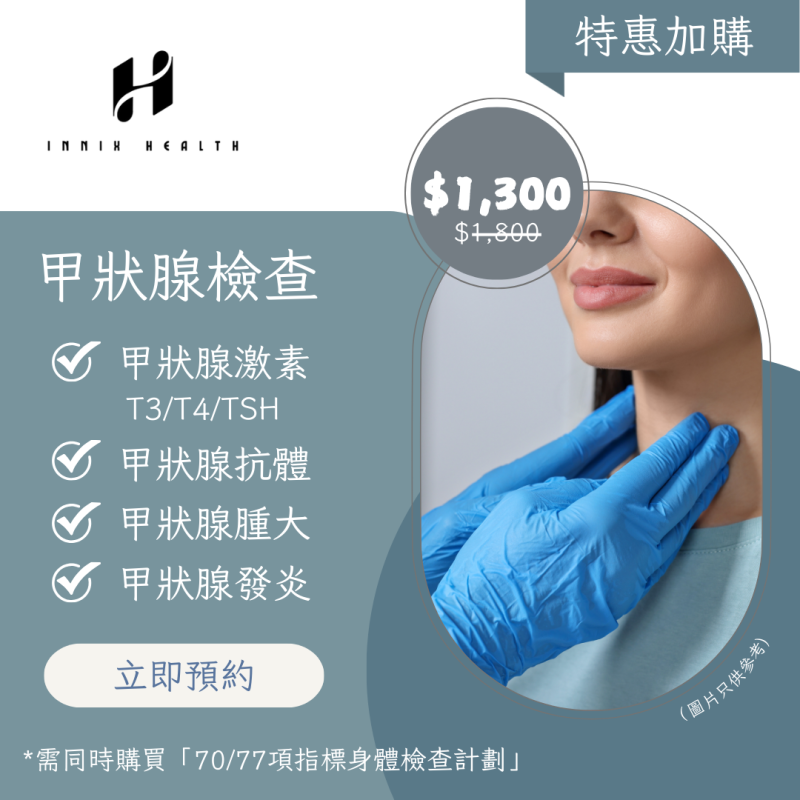 加購甲狀腺檢查(需同時購買70/77項指標身體檢查計劃)