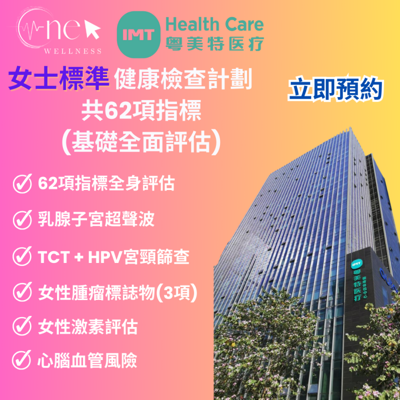 女士標準健康檢查計劃共62項指標 (基礎全面評估)