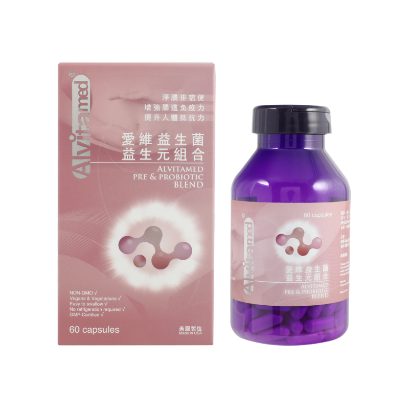 愛維益生菌﹒益生元組合配方提供均衡的活生物體群,由耐酸益生菌菌株組成,有助維持腸道內壁的完整性,幫助腸道蠕動並促進排毒。含7.5億CFU,由6種不同的益生菌菌株和2種益生元組成。